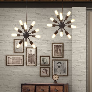 Hay dos tipos principales de iluminación en el estilo industrial, y estos juegan un rol muy importante en la decoración. El primero es el estilo antiguo, por ejemplo candelabros, y el segundo es moderno, con formas geométricas y mucho metal.